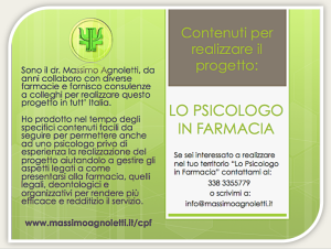 CONTENUTI DELLO PSICOLOGO IN FARMACIA