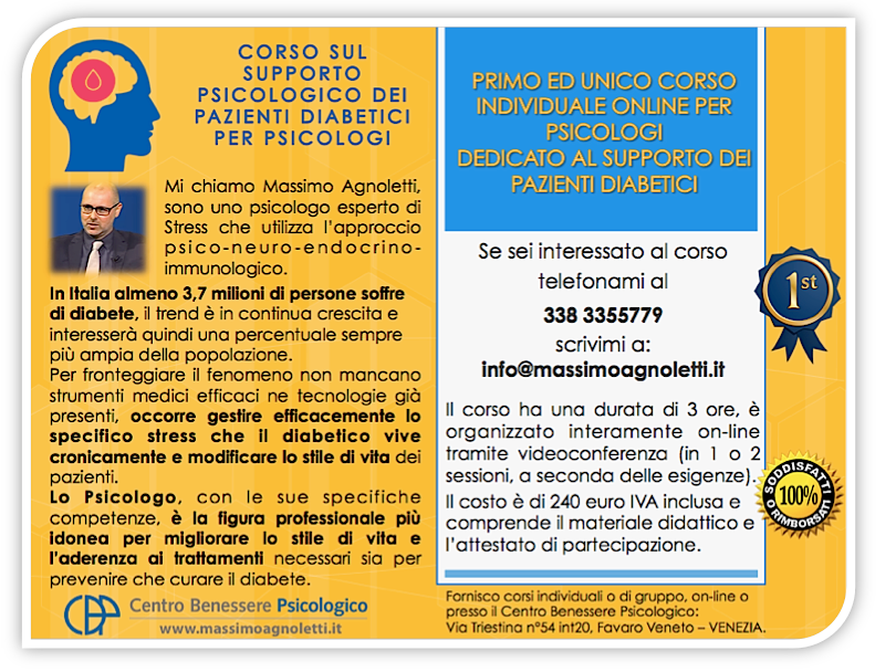 CORSO ON LINE DI SUPPORTO PSICOLOGICO DEI PAZIENTI DIABETICI PER PSICOLOGI