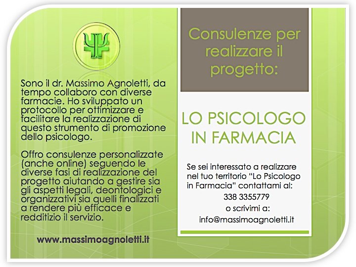 CONSULENZE PER REALIZZARE IL PROGETTO LO PSICOLOGO IN FARMACIA