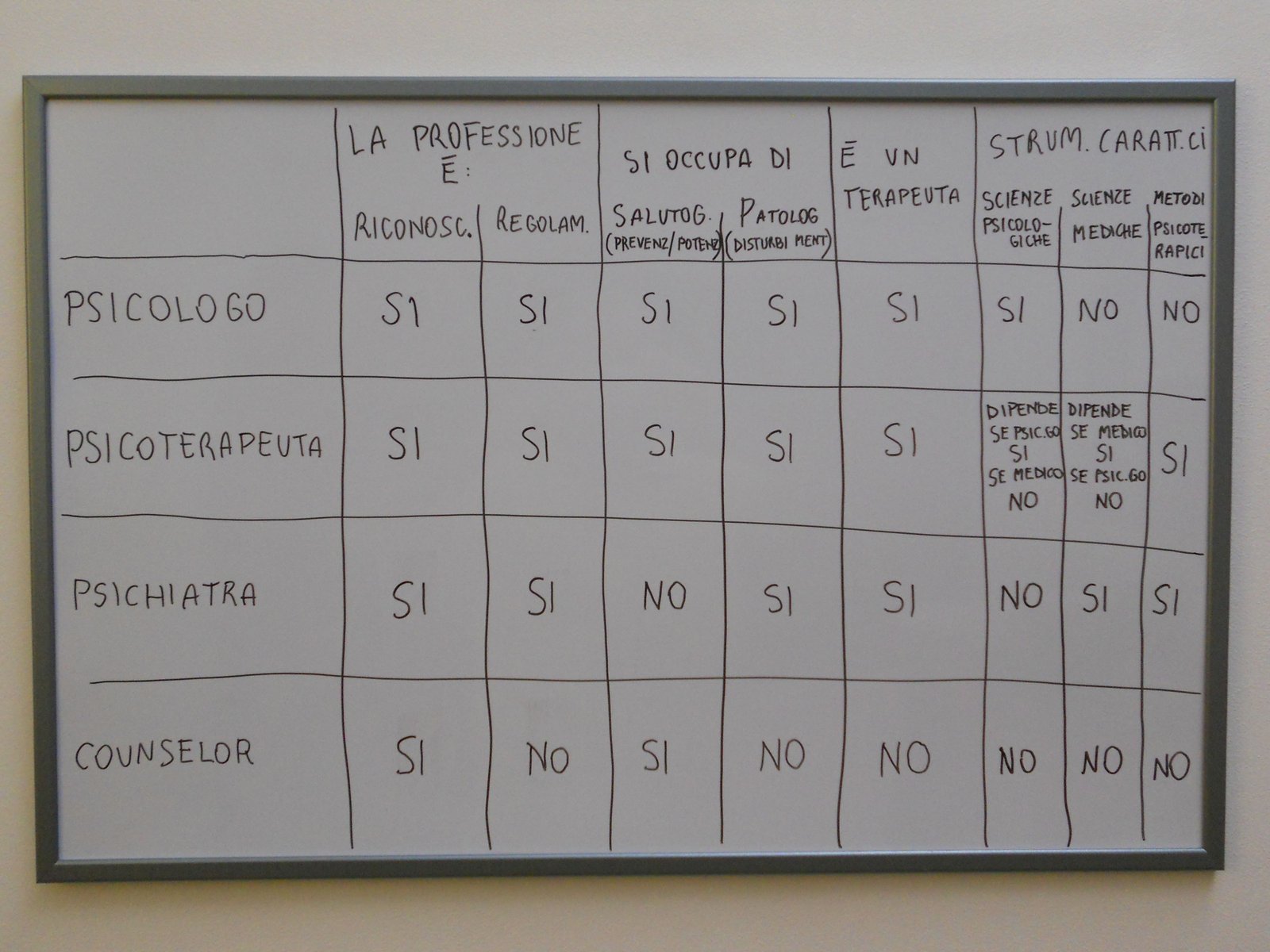 schema delle differenze tra le varie professioni che hanno a che fare con il benessere psicologico
