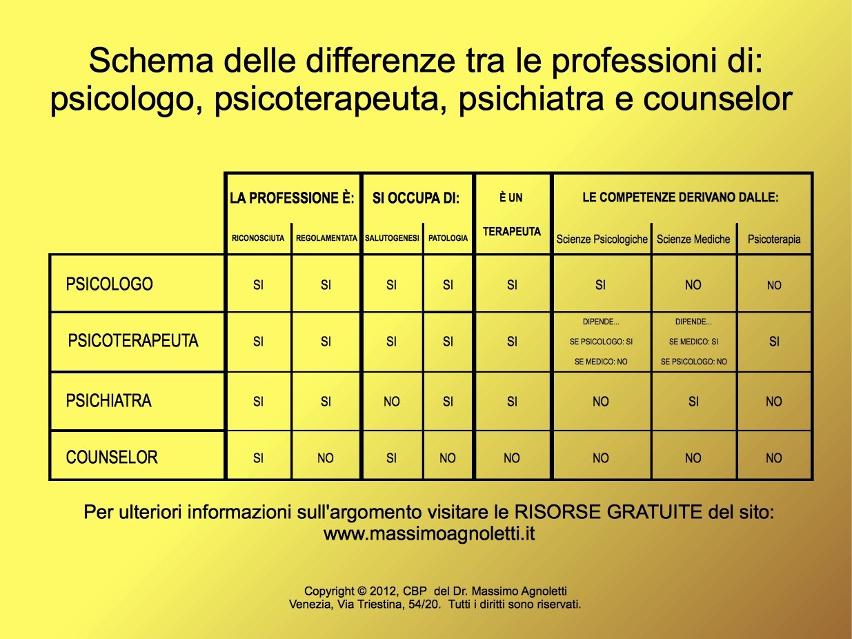 SCHEMA DIFFERENZE TRA LE PROFESSIONI DEL BENESSERE PSICOLOGICO